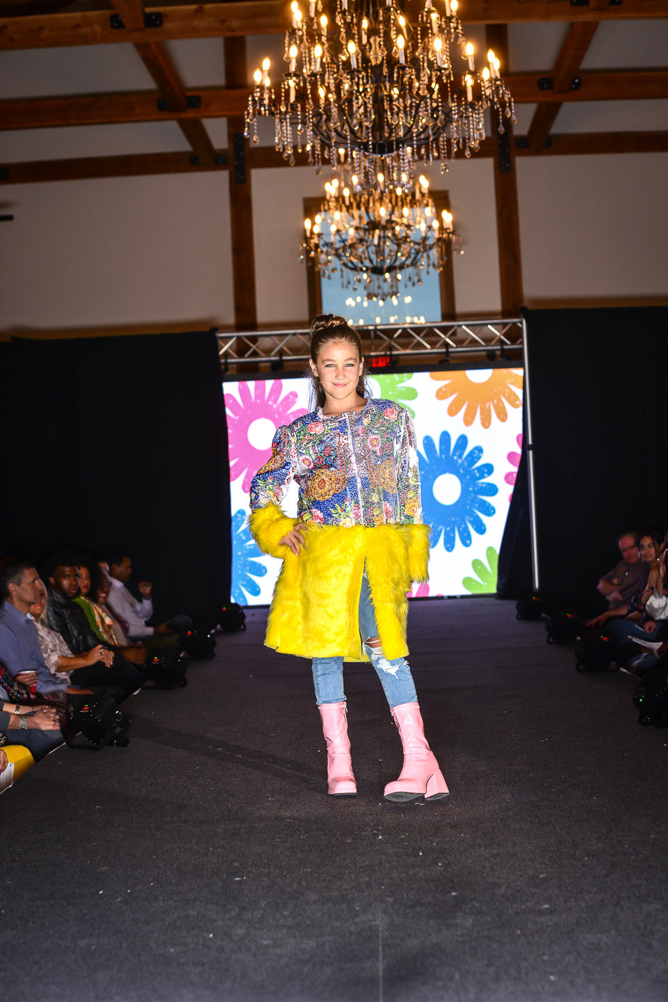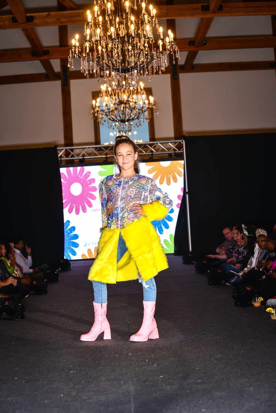 Printed Sequin Coat with Bright and Vibrant Yellow Faux Fur – a whimsical and fashionable outerwear piece designed to keep your little one stylish and cozy. This eye-catching coat is perfect for adding a touch of fun and warmth to your wardrobe.