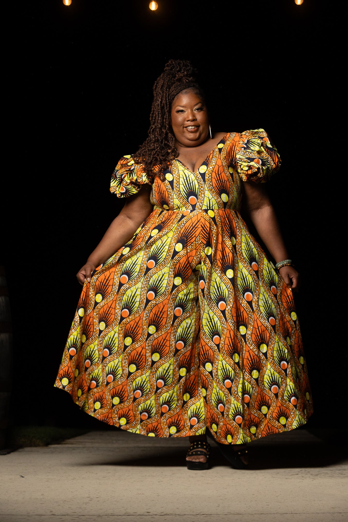 The Ola Vibrant Orange African Print Puffy Sleeve Wide Leg Jumpsuit is a celebration of culture and a testament to the unparalleled beauty of one-of-a-kind fashion. If you're looking for a fashion piece that is as unique as you are, this exclusive jumpsuit is the embodiment of rarity and individuality. Make it yours and make a statement that will be remembered for a lifetime.